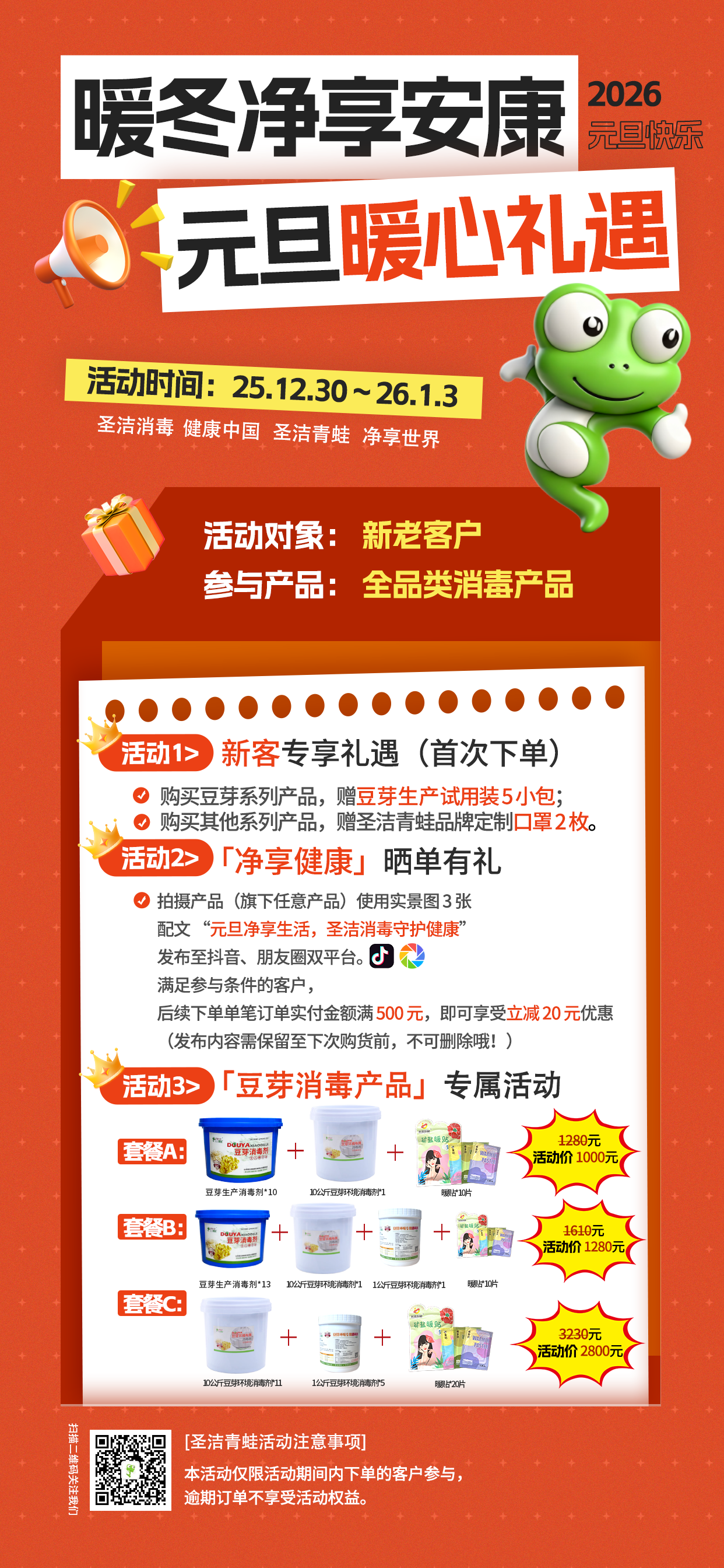 【元旦活动】圣洁青蛙2026元旦活动来啦!三大专属活动同步开启,福利集结就等你!活动时间:25.12.30-26.1.3